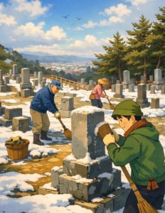 冬の間に積もった雪は、墓石や周辺環境にさまざまな影響を与えます。